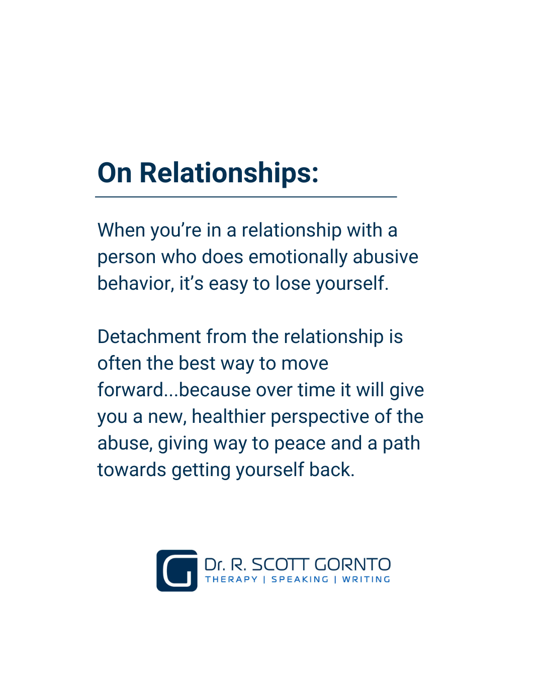 Dr. R. Scott Gornto, PHD, MDIV, LMFT, EMDR holds a PhD in Psychotherapy, Psychology & Marriage and Family Therapy and is a trained psychotherapist, counselor and peak performance coach. He is a Licensed Psychotherapist (Individual, Marriage and Family in Texas and Arizona), a EMDR Trained Trauma Therapist and has extensive training in the behavioral sciences and personal development. Dr. Scott is in private practice and has been practicing in North Texas since 1999. He works with individuals, couples, adolescents (12 yrs old and up), families, groups, entrepreneurs/leaders and businesses from Plano, Frisco, McKinney, Allen, Prosper and Dallas and the surrounding areas. Dr. Scott is the author of The Stories We Tell Ourselves™ and is a columnist for the Huffington Post and Psychology Today.